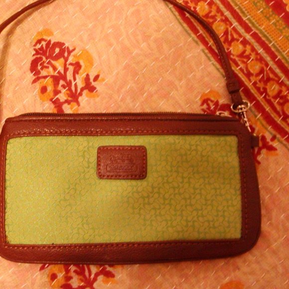 Small lime green Coach purse. 9X5 in. Small but larger than a wristlet. Excellent condition. Make offer.