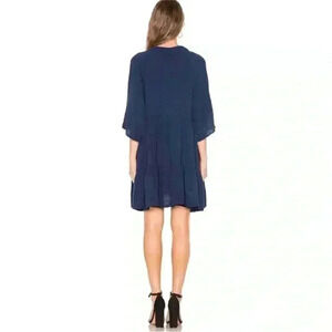 9seed V Neck Short Sleeve Ruffle Tiered Gauze Lagenlook Dress Size M/L In Navy
