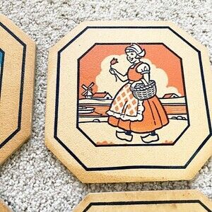9x Dutch Boy Girl Trivet Advertising Cork Priscilla England Mpls Minnesota Iowa