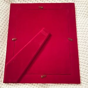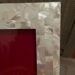 Photo frame with pattern inlay capiz shell. Photo space is 7.5x9, velvet back with stand.