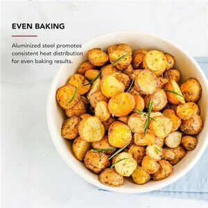 🧿GREAT RESULTS: aluminized steel construction promotes consistent heat distribution across the pan, allowing for evenly baked desserts and perfectly roasted dishes
