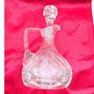 Antique Crystal Oil & Vinegar Bottle With Rose Pattern Engravings