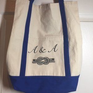 "A & A" Initialed Nautical Personalized Canvas Tote Travel Beach Shopping Bag