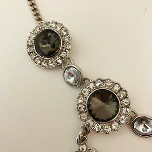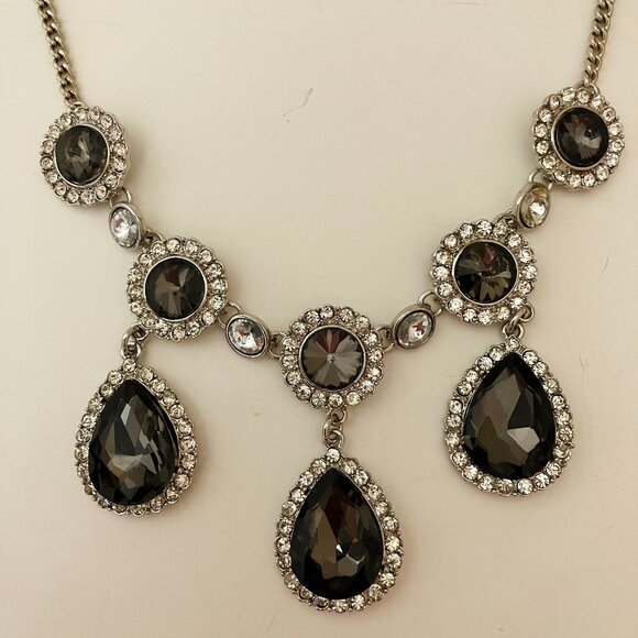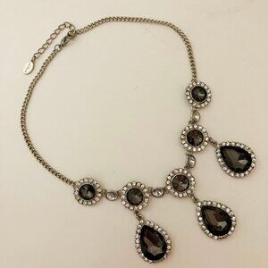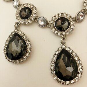 A & A Statement Necklace Brown Crystal Rhinestone Teardrop Silver Chain Vintage