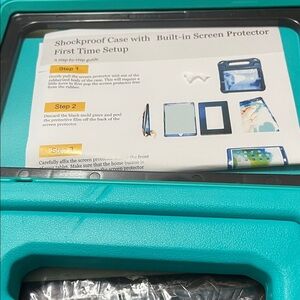 A ADENK Teal Tablet Case with Handle Built in Screen Protector