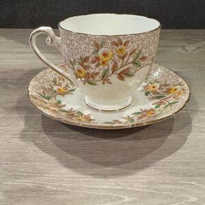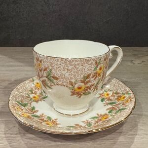 A B J Grafton Hand painted Floral gold Trim Tea Cup Saucer Made in England