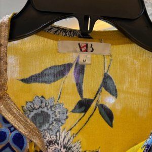 A & B Yellow, blue and gold floral "boho chic" open bell sleeve cardigan