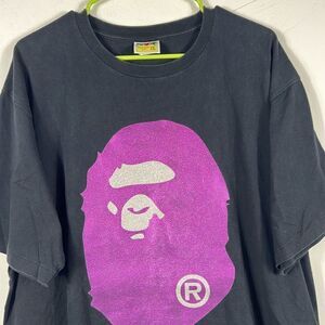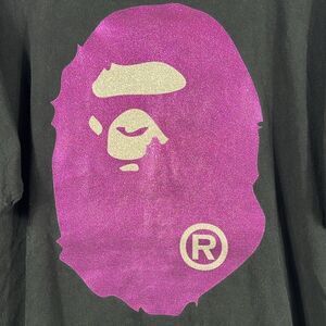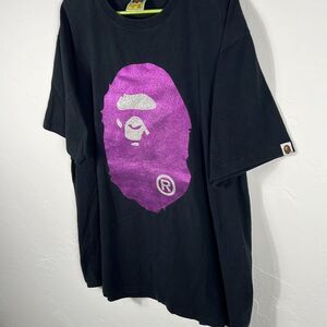 🦍 A BATHING APE BAPE Purple Glitter Streetwear Designer LOGO T-SHIRT 2XL - EUC