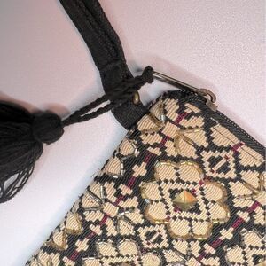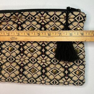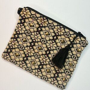 A & B Evening Bag Beaded Clutch Makeup Pouch Zipper Tassel Medium