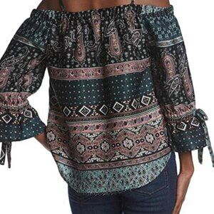 A. BYER OFF THE SHOULDER CHIFFON PATTERN BLOUSE (SIZE M)