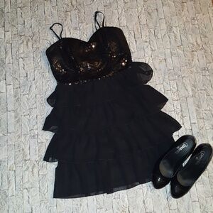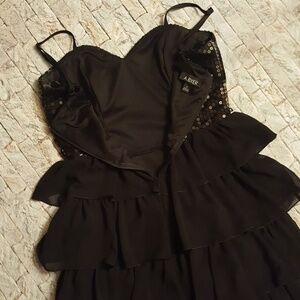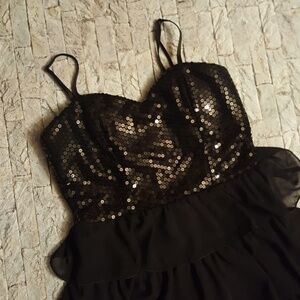 A BUYER dress. Holter top us sequence and bottom pleaded sheer. Gently used. Dress can be used with or without straps. Size 11. <lb2>