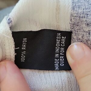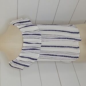 A. BYER small white with blue & grey stripes. Lightweight flowy blouse.