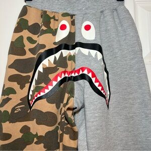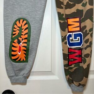 A Bathing Ape Bape Joggers Gray & Camo Shark WGM Sweat Pants Small