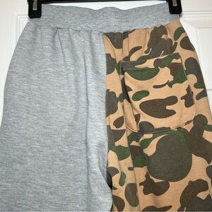 A Bathing Ape Men's Joggers, Camo and Gray, Size Small. Slash pockets on the front. One back pocket.