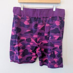 These sweat shorts feature a SHARK HEAD camo design with a rubber-printed shark on the front. They include side and back pockets and pin label on the hem. Note that these shorts are missing the drawstring, but could easily be restrung.