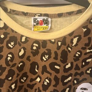 Stylish leopard print t-shirt by A Bathing Ape. Features a bold brown and cream pattern.