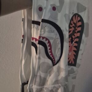 Stay stylish with the A Bathing Ape Women's White Shark Jacket. Featuring a unique shark design, this jacket is perfect for making a statement. The white color adds a classic touch to your wardrobe.