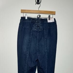 A Beautiful Soul Women 12 Jean NWT Flare Denim Dark Stormy Night Raw Hem Boho