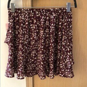 A Beautiful Soul Maroon Leopard Print Ruffled Pull On Skirt XL