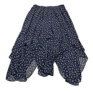 A Beautiful Soul Skirt Womens 1X Blue Ditsy Floral Asymmetrical Layered Chiffon