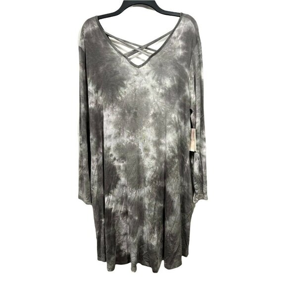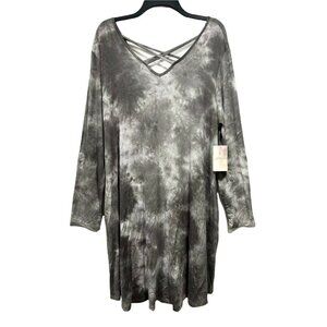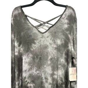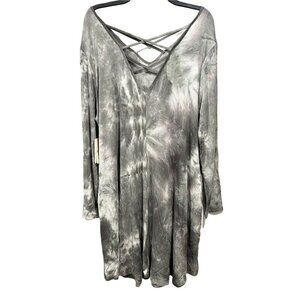 A Beautiful Soul Tie Dye Tunic Dress Dusty Olive Stretch Knit V-Neck L/S NWT