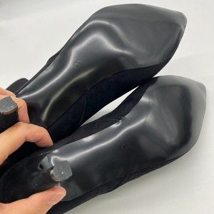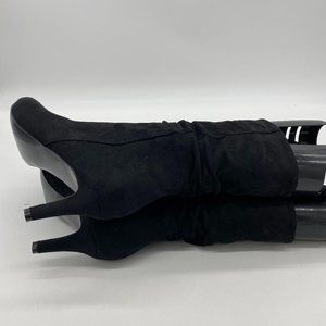 A Black Suede Women Fashion Pull On Slouch Boots Mid Calf Pointed Toe Mid Heel