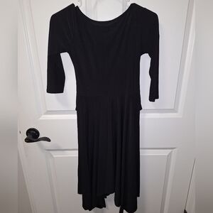 This is a Boston Proper 3/4 sleeve black maxi dress in a size XXS. It's pre-loved and in great condition (see pics). A closet staple. Sexy, classic, sophisticated, conservative dress.