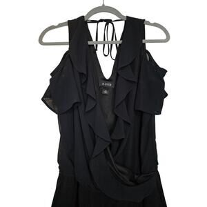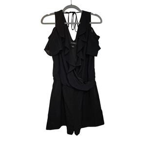 A. Byer Black Ruffled Cold Shoulder Romper With Pockets Womens Size S