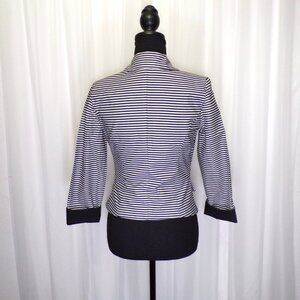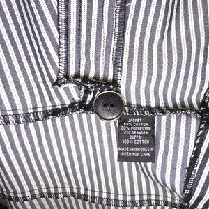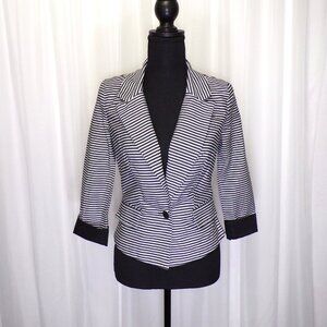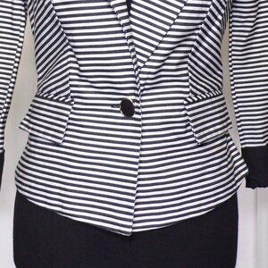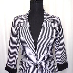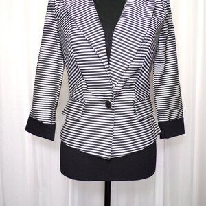 A Byer Blazer Jacket Womens Sz SM Black White Striped Shoulder Pads Faux Pockets