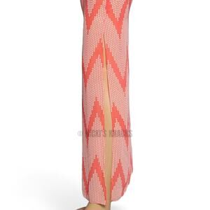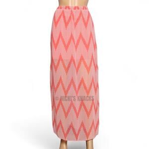 A Byer Chevron Print Chiffon Maxi Skirt Coral Pink Side Slit Boho Beach Size S