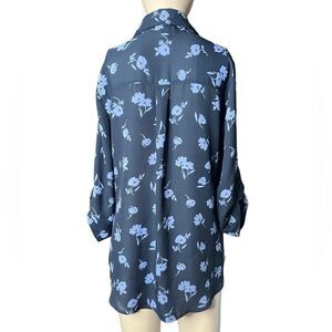 A. Byer Floral Button Down Blouse Two Tone Blue Size Medium