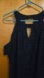 Chic navy lace mini dress with cap sleeves. Features a stylish keyhole neckline. Perfect for evenings out.