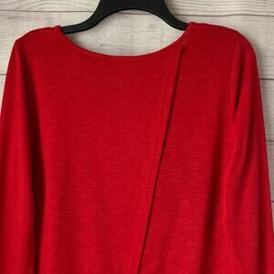 A. Byer Red and Black Blouse Split Back High Low Hem Lace Sleeve Size L