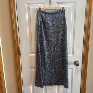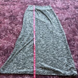 Elevate your wardrobe with this elegant gray maxi skirt. Perfect for any occasion, it offers a timeless look and comfortable fit. I believe this is a small based on measurements, the tag has been removed. Please view the photos.