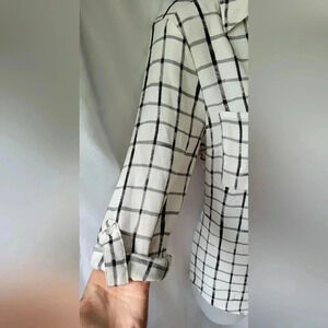 A. Byer Women's Button Down Top, Black & White Checkered Roll-Tab Sleeve Size M