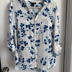 Lightweight and fabulous, this button-front blouse from A. Byer is decorated with a vibrant print for an eye-catching look.