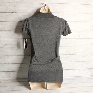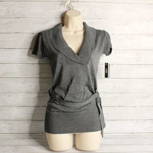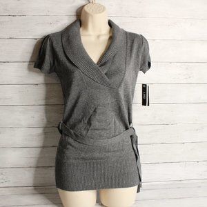 A. Byer Women's Tunic Sweater Size S Gray Belted Short Sleeves