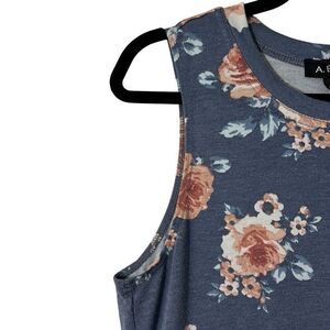 A. Byer rose floral on blue print simple sleeveless A-line dress L.