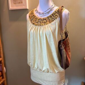 A. Byer - Super soft, buttery yellow y2k sleeveless top with beaded/stone embellished collar/neckline.