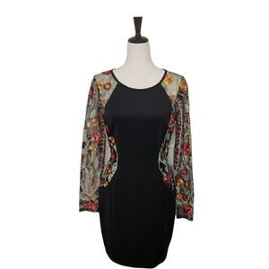 A. Byer Black Floral Embroidery Sheer Long Sleeve Dress Size 7