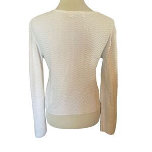 You just can never go wrong with a white cardigan in your closet now can you? This long Sleeve, Lightweight, Cotton, Buttoned, Cardigan with its Weave Knit Design Size L Made by A. Buyer is certainly a Timeless Classic and go to piece for any wardrobe.