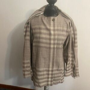A. C. Sport Vintage Tan/Brown Plaid with attached scarf Wool jacket, size XL