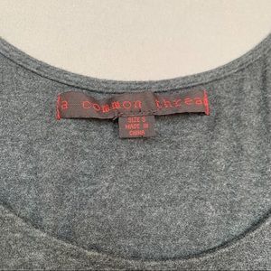 A Common Thread gorgeous soft knit obi inspired three-quarter sleeve shirt top, women’s small. Dark gray with a scoop neck and a patchwork obi inspired vintage waist tie. Unstretched bust measures 18 inches across, length about 28 inches, sleeve about 17.5 inches. Preloved very good condition. Really unique, contemporary, and fun. Looks like it came from Anthropologie.