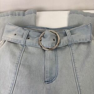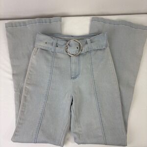 A Calin By Flying Tomato Light Wash Denim Belted Flare Jeans Size S (26x30.5)