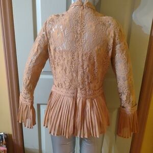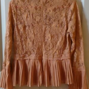 this is a nice pre-owned long sleeve blouse size medium with a zipper back lace please see pictures for details and it is in good condition.