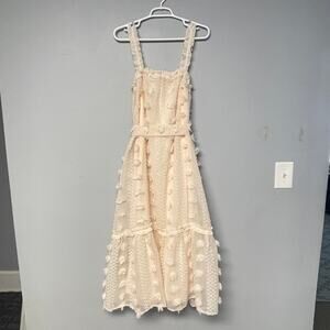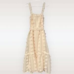 A Calin Maxi Dress Womens Small Cream Swiss Dot Pom-Pom Boho Feminine Elegant