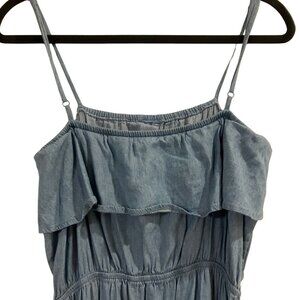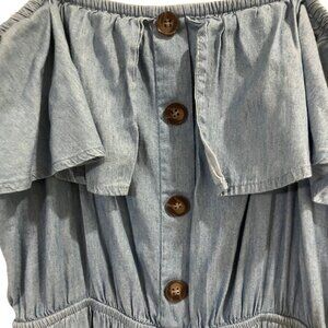 A. Calin by Flying Tomato Light Blue Chambray Sleeveless Ruffle Jumpsuit Large