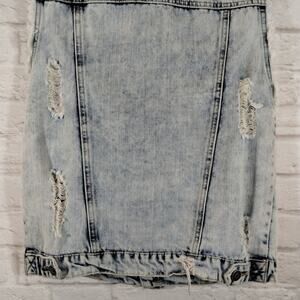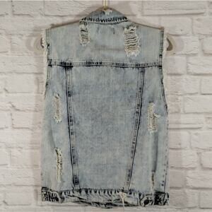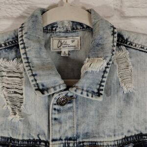 A Chiqle Denim Architect Light Acid Wash Distressed Ripped Denim Jean Vest S