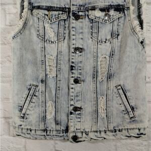 A Chiqle Denim Architect Light Acid Wash Distressed Ripped Denim Jean Vest S details: