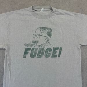 A Christmas Story T-Shirt Mens Large Gray Short Sleeve "FUDGE!" Funny Tee Delta